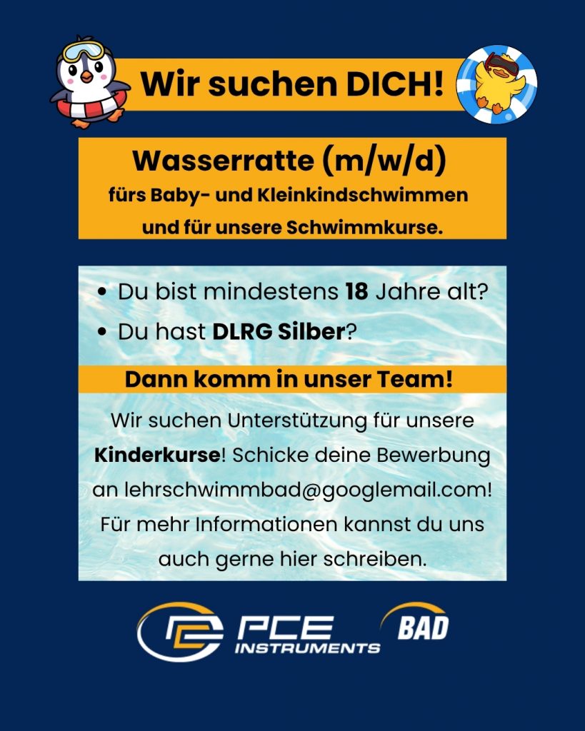 Habt ihr Lust, uns bei den Kinderkursen im PCE Instruments Bad in Freienohl zu unterstützen? Wir suchen:
